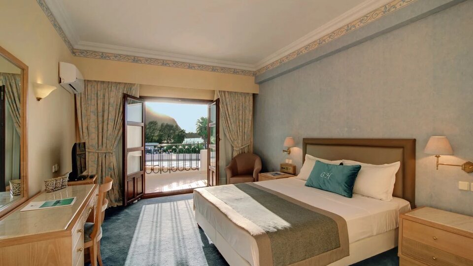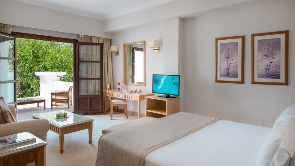 Хотелът предлага на своите гости настаняване в 224 стаи и апартамент с изглед към планината или морето. Всички помещения са просторни и стилно декорирани в средиземноморски стил, оборудвани с климатик, телефон, телевизор, мини бар, сейф и балкон или тераса.